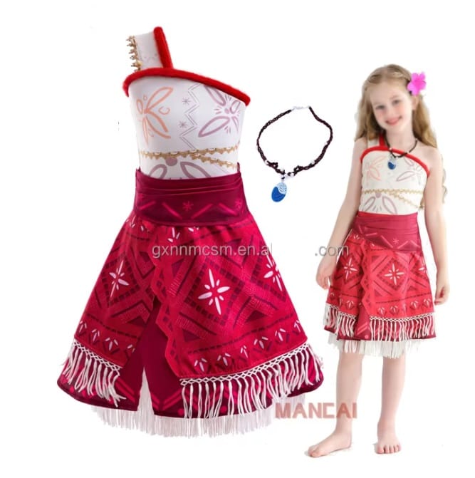 Vestido de Moana, tela sublimada, forro interno de algodón. + collar